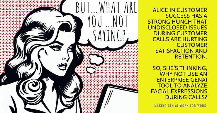 Just like Roy Lichtenstein’s comic art bubbles visually express characters’ inner thoughts, genAI decodes subtle clues, revealing hidden sentiments in a discussion. It surfaces unsaid thoughts, helping to reveal what may lie beneath the surface of a conversation.