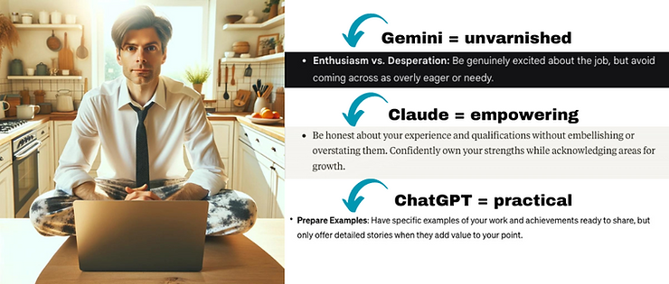 This prompt addresses a contemporary and relatable situation, highlighting the challenges of virtual communication and the importance of striking the right balance in a professional context. It may reveal how different tools approach topics related to self-presentation, interview strategies, and the nuances of remote work.